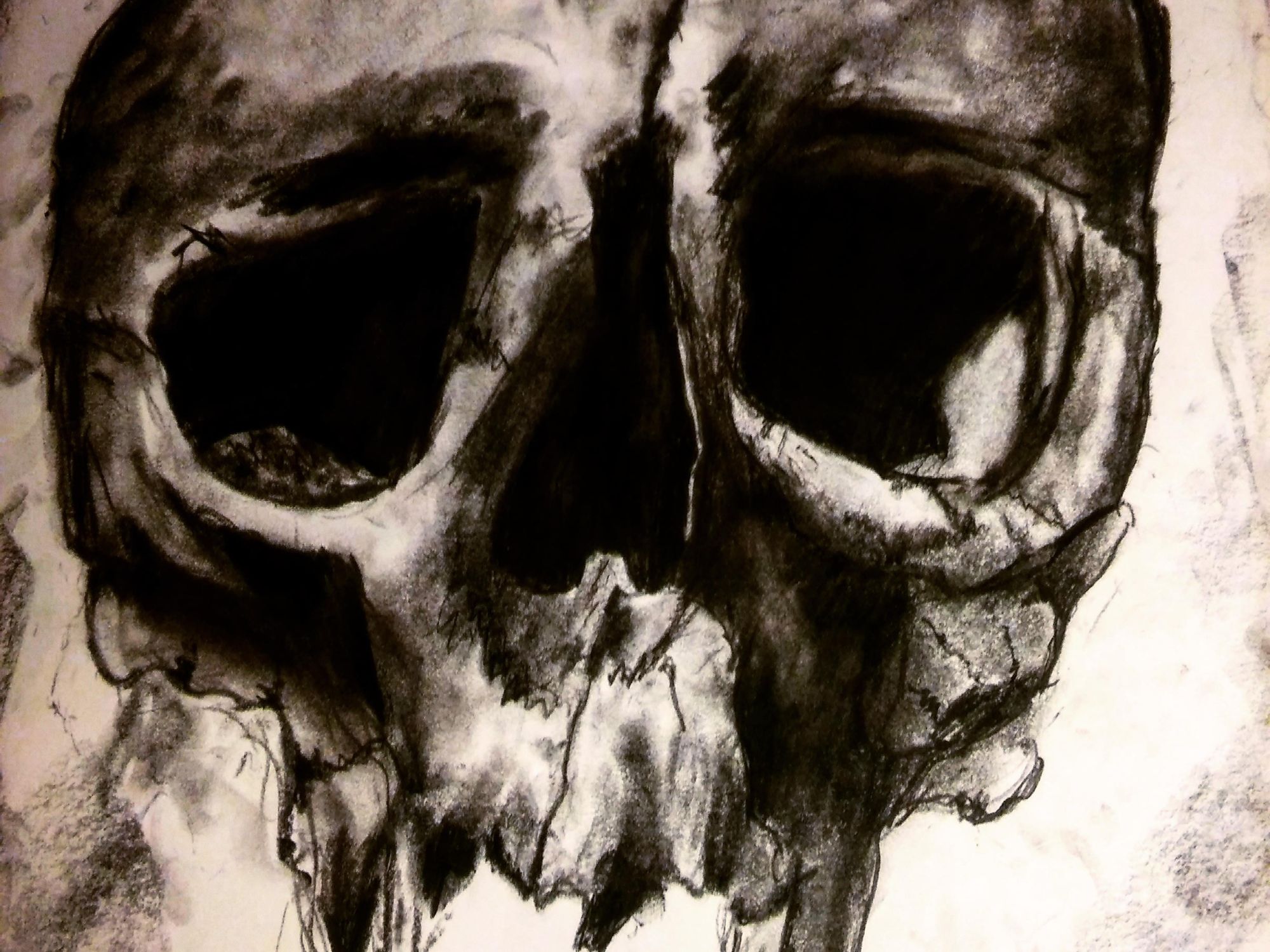 Staying with the Skeleton theme i wanted to draw an object with more depth and shadow. for this I choose a skull. this allowed me to incorporate and expand my use of shadow and dark tones.