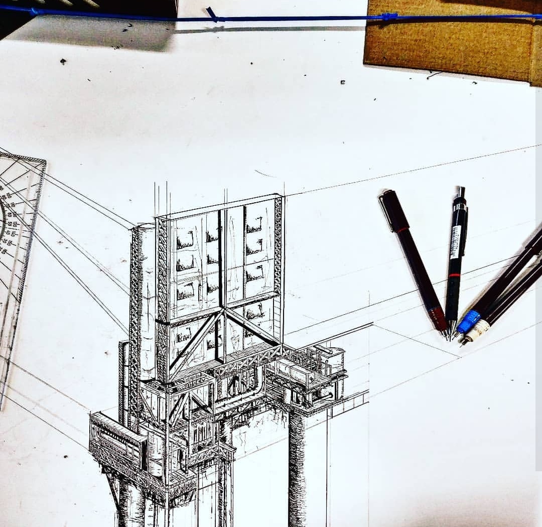 I feel like oil rigs are a perfect definition of human interaction and chaotic teamwork which creates a form which is so complex and functional. I am currently a month in and about halfway through. I am currently working on waves by painting over charcoal.