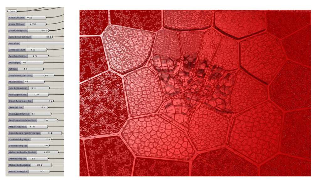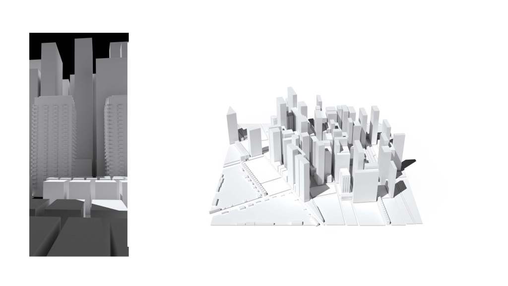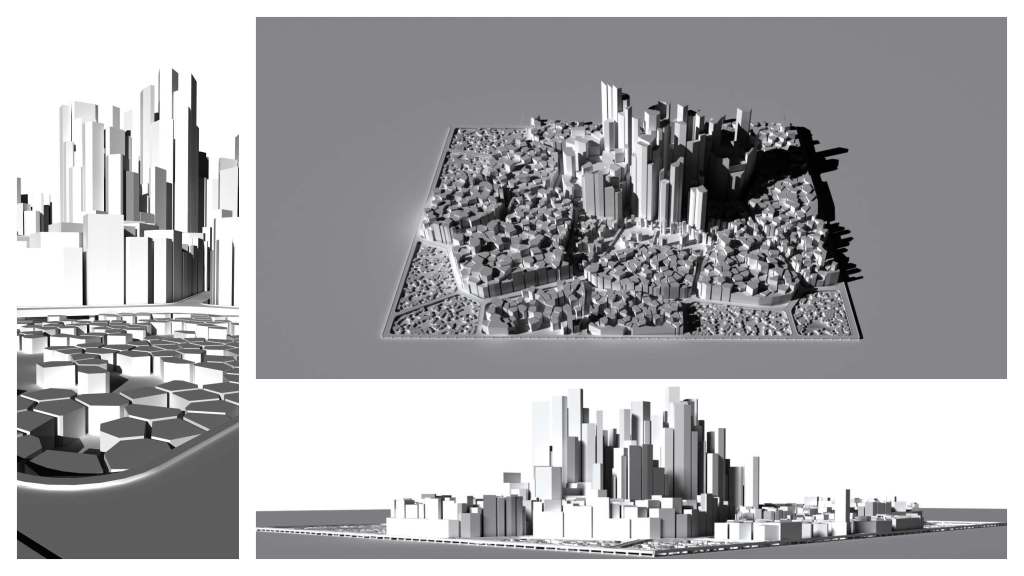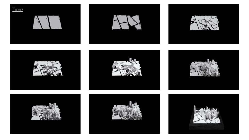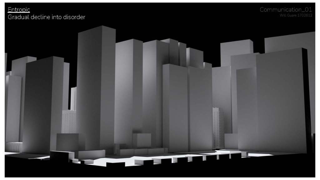 This project was a project designed around our education in grasshopper and parametric design. We were given a buzzword designed to be a starting point in designing a simple 3d model. My word was entropic based around entropy, the movement from simplicity to chaos. For this I decided to focus my model around the evolution of a city and look into the growth and build up of chaos within urban design. Using grasshopper I designed two city designs that can be controlled and organically grown using digital parameters. One design based on a voronoi design and one on a traditional block design.