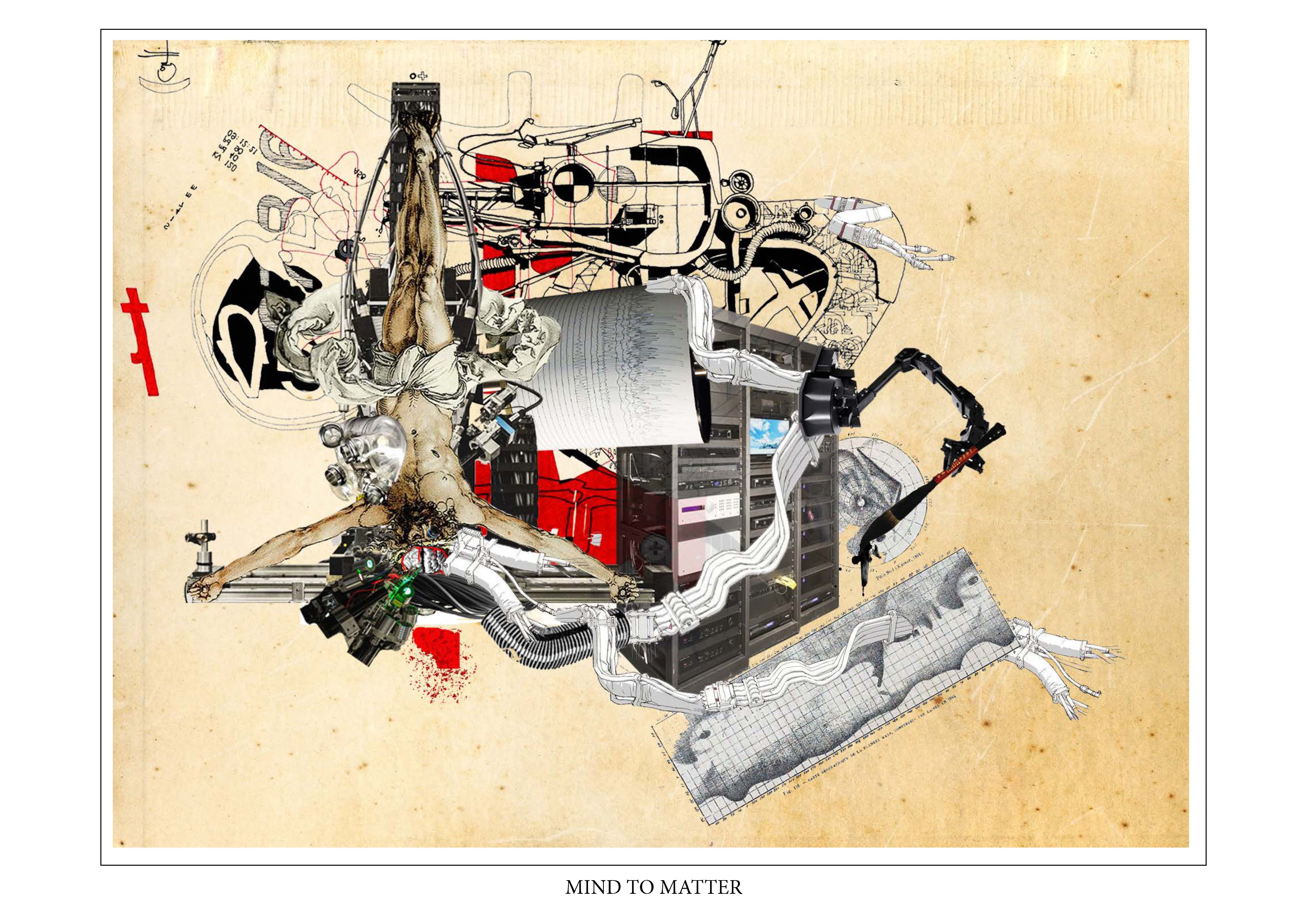The collages I made for the symphony mind project, (a project that is based around collecting minds thoughts and emotion and projecting it through a building) are designed to be a catalyst. In order to understand the narrative of the project and create visual images that help explain the process and textures of the building.